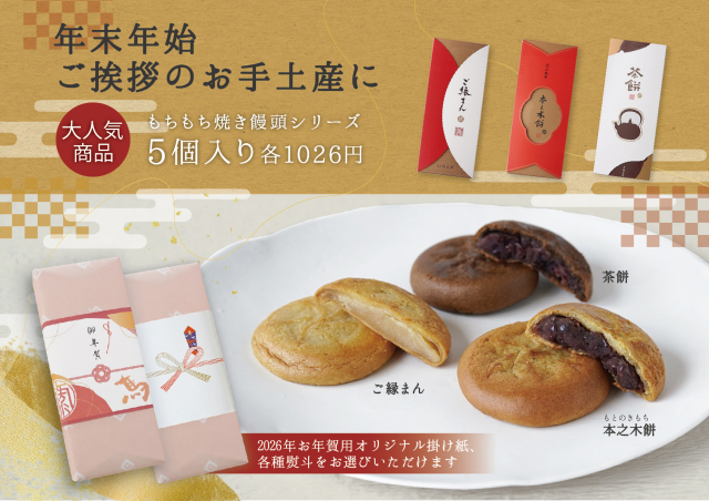 本之木餅、茶餅、ご縁まんのもちもち詰め合わせ。